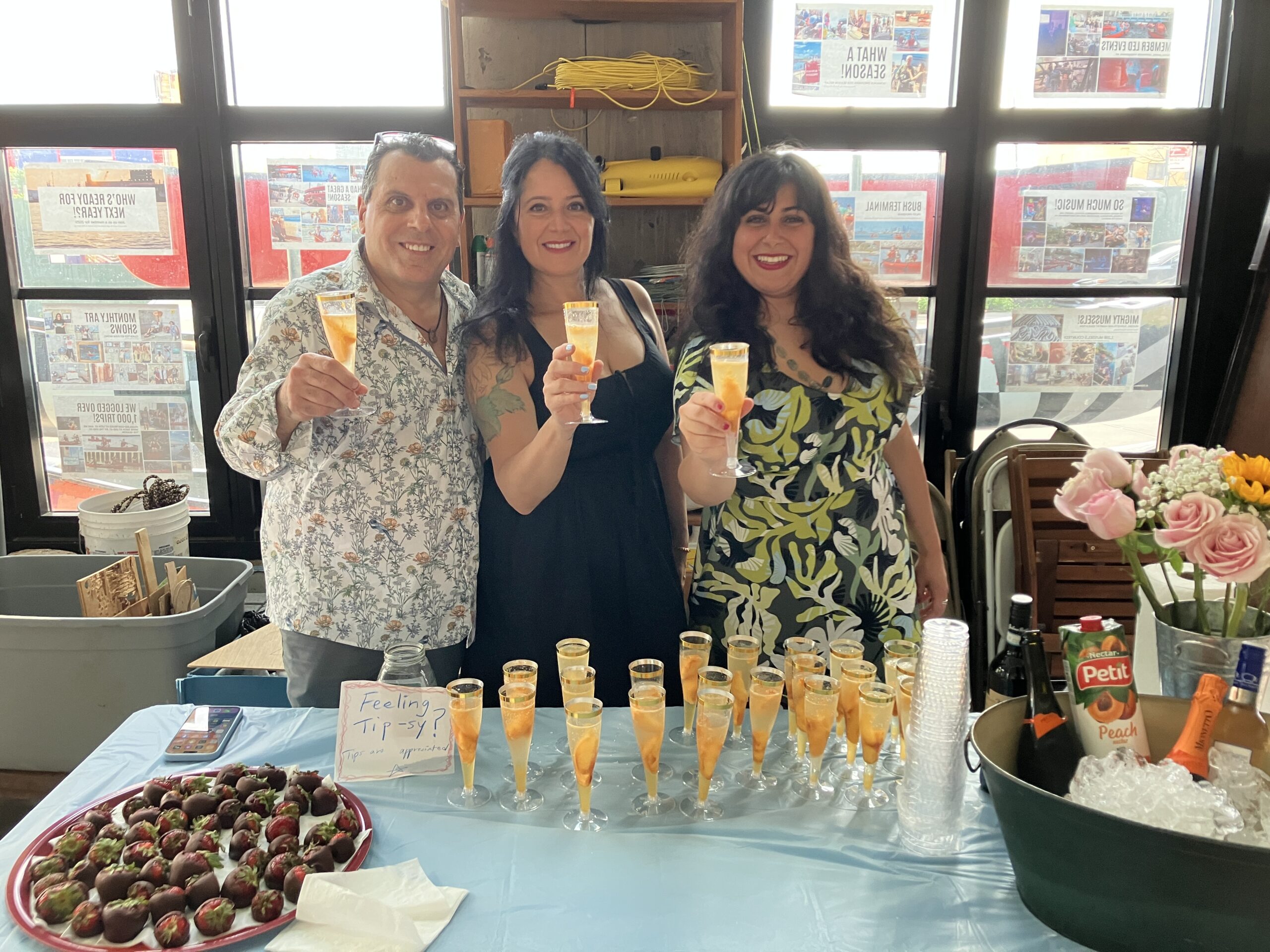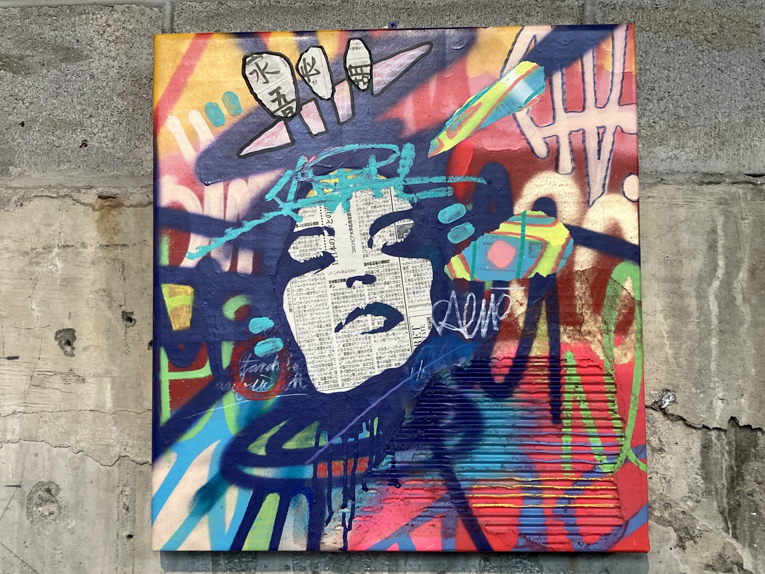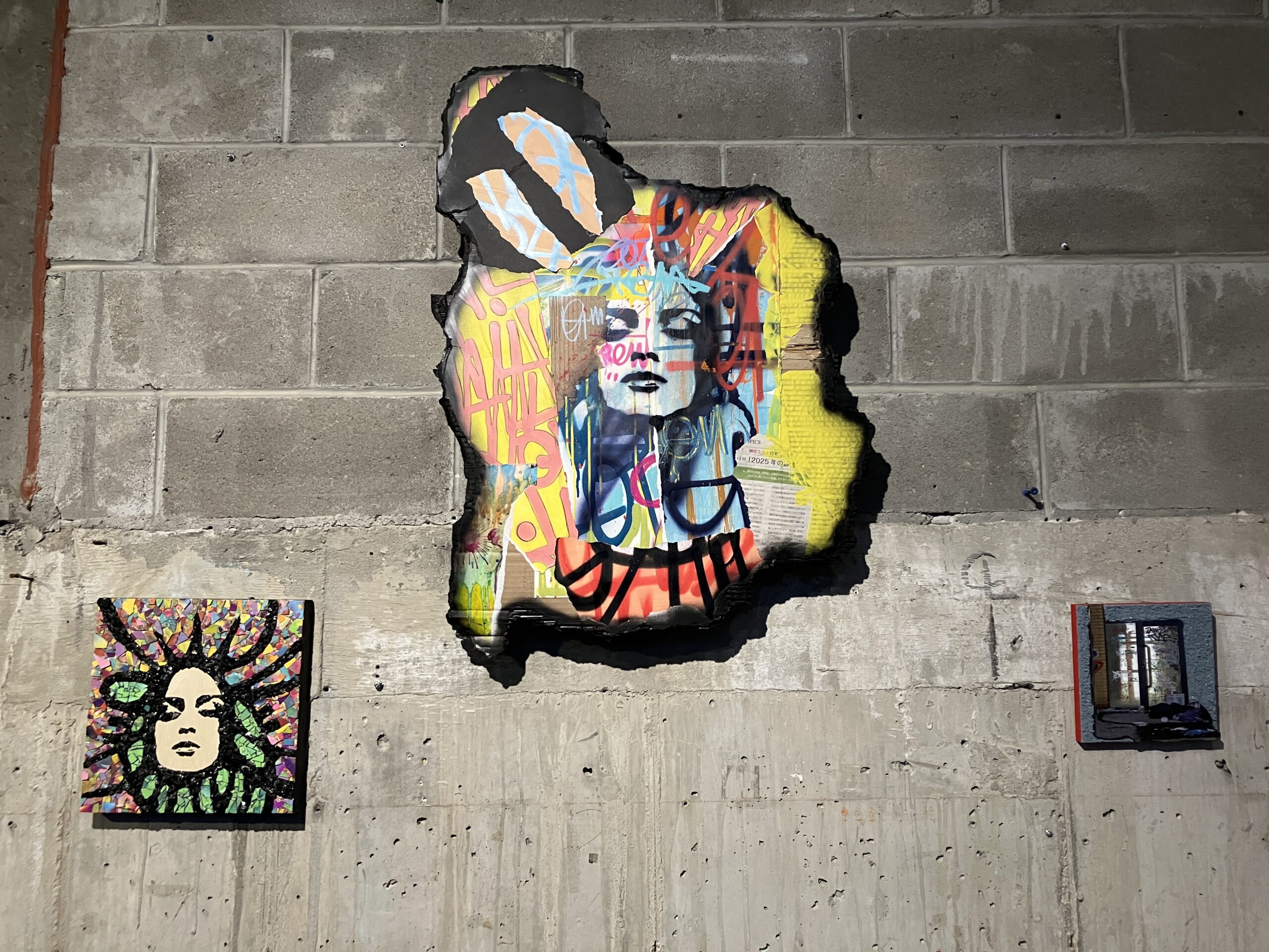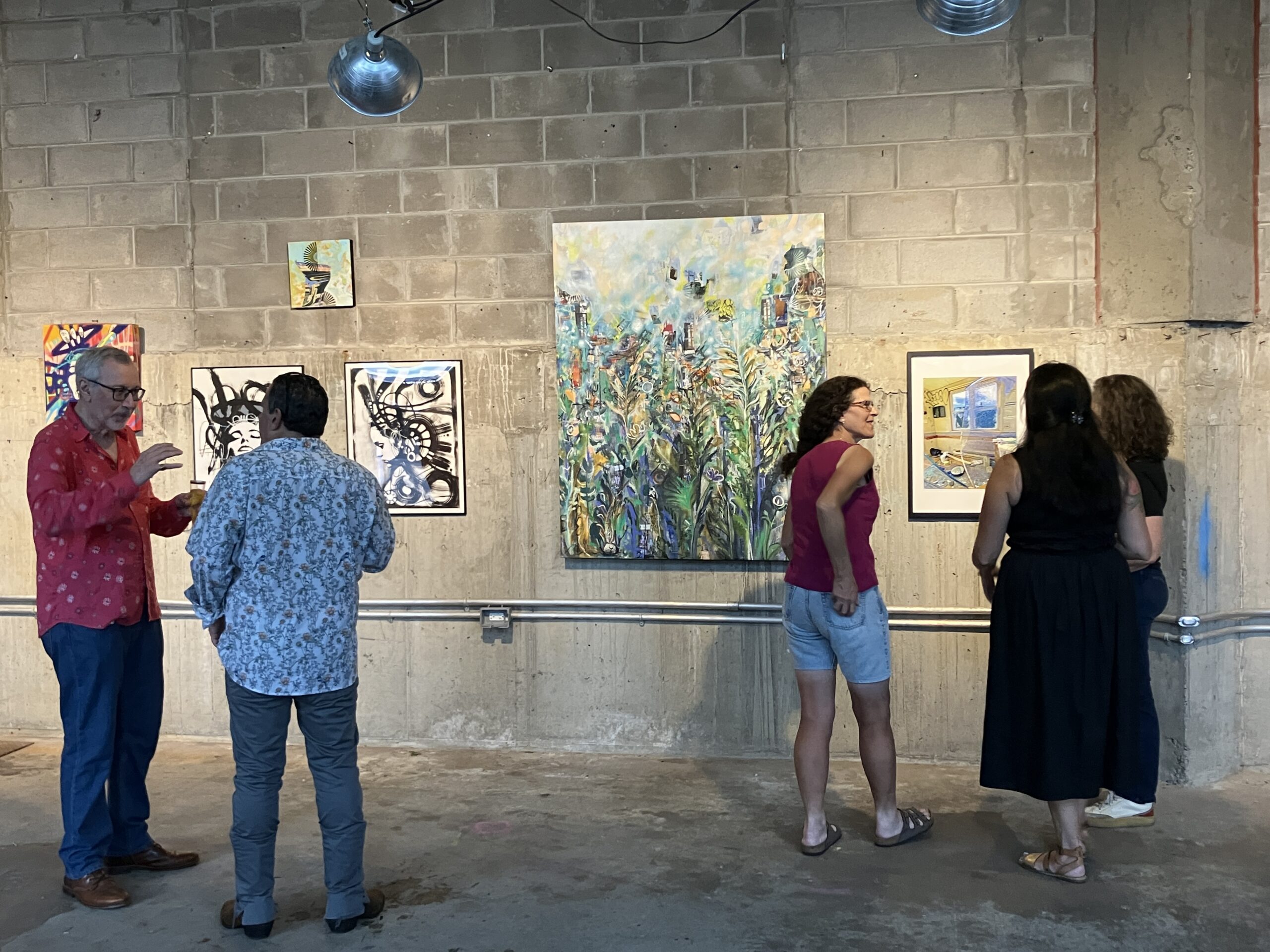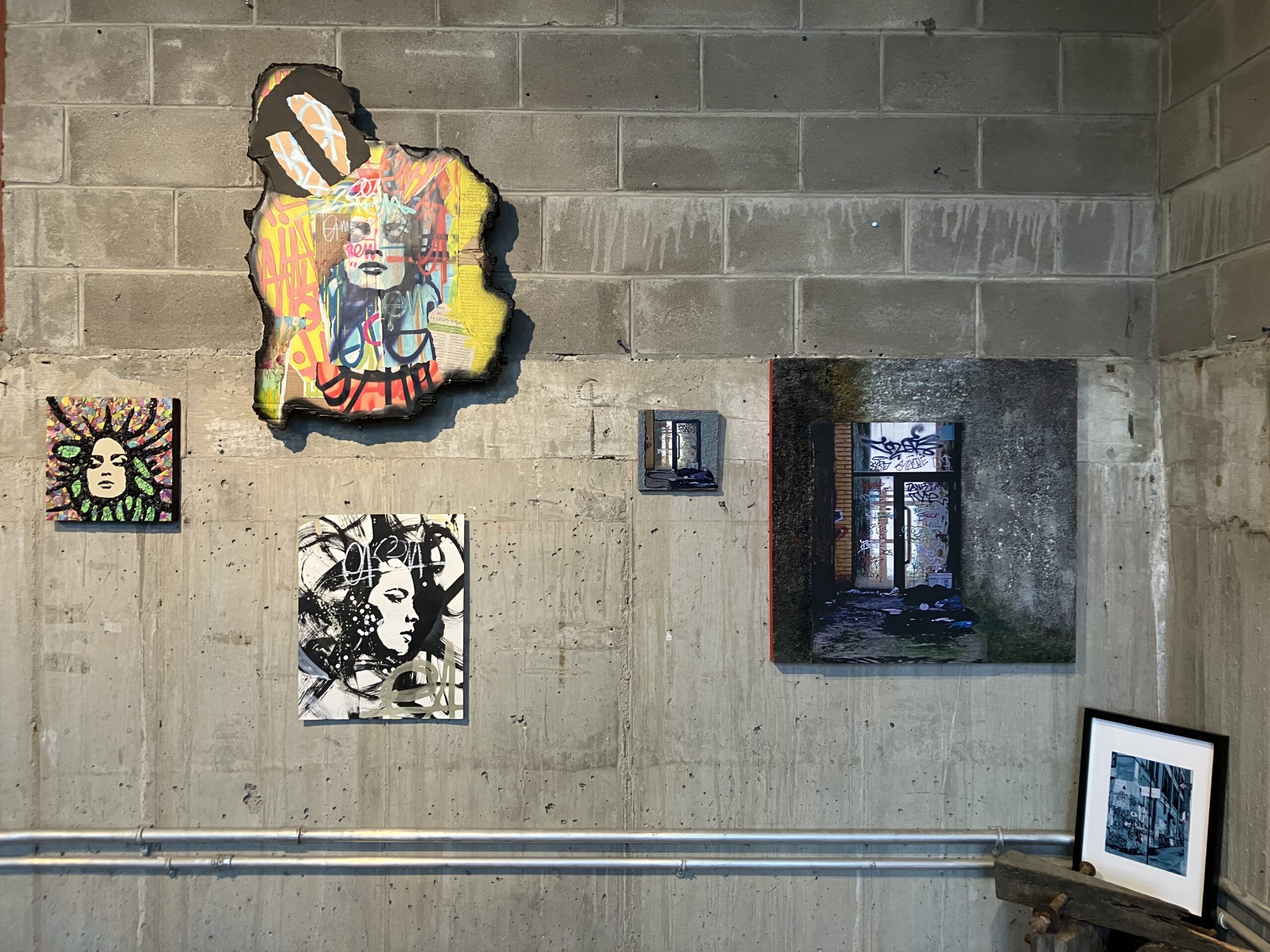 Throughout the duration of the exhibition, the artists hosted a raffle, offering a chance to win an original artwork by AURAxDR. With a minimum $5 donation, visitors had the chance to add their own creative touch to a collaborative canvas. (Art supplies were provided.) On the last day of the exhibit, AURAxDR added his signature “AURA” image to the completed piece. Lucky raffle entrant, KB, got to take home this unique work of art! All proceeds were donated to the Gowanus Dredgers and their amazing community programming. Thank you Joann and AURAxDR!